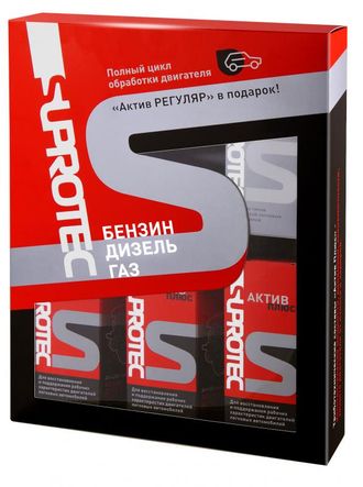 В подарочный набор входит три флакона "Актив Плюс" и один флакон "Актив Регуляр". Триботехнические составы восстанавливают износ деталей и позволяют поверхностям трения прочнее удерживать моторное масло.
