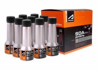 Мягкая присадка в топливо СУПРОТЕК АПРОХИМ «SDA» («СДА») в упаковке box - 9 флаконов по 50 мл.. Достаточно для применения при каждой заправке на пробеге в среднем до 5000 км. Эта упаковка рассчитана на покупателей, кто уже хорошо знаком с действием присадки SDA. Для первой пробы - приобретайте присадку в упаковке double - 2 флакона по 50 мл (страница продукта здесь).